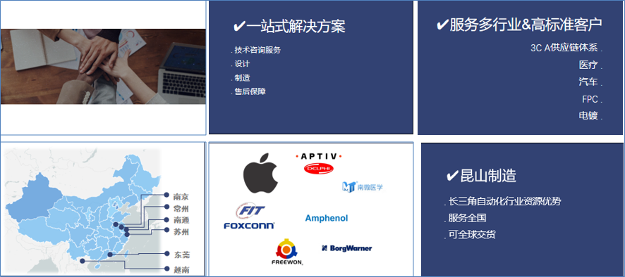主營高標(biāo)準(zhǔn)非標(biāo)定制設(shè)備,3C、電鍍、沖壓、FPC、成型等多行業(yè)上下料設(shè)備,視覺類軟硬件設(shè)備,并提供相關(guān)技術(shù)支持和整套解決方案。 自有視覺團(tuán)隊提供非標(biāo)設(shè)備常規(guī)視覺服務(wù)。與業(yè)界頂尖視覺公司長期合作,一站式提供外觀檢AI深度學(xué)習(xí)服務(wù)。